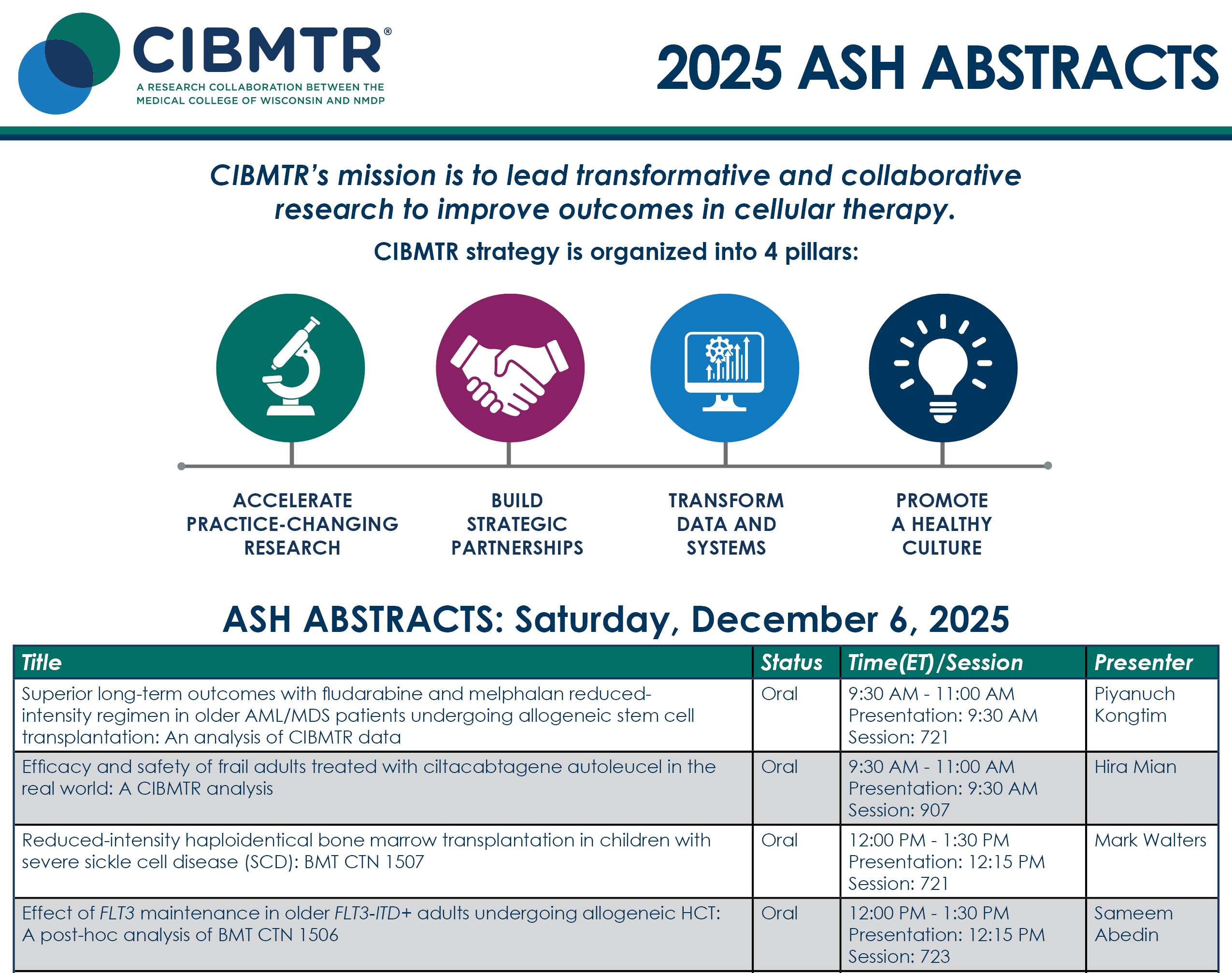 CIBMTR is dedicated to improving survival, treatment, and quality of life for patients. With more than 1,900 publications, CIBMTR conducts practice-changing research that helps patients and physicians.